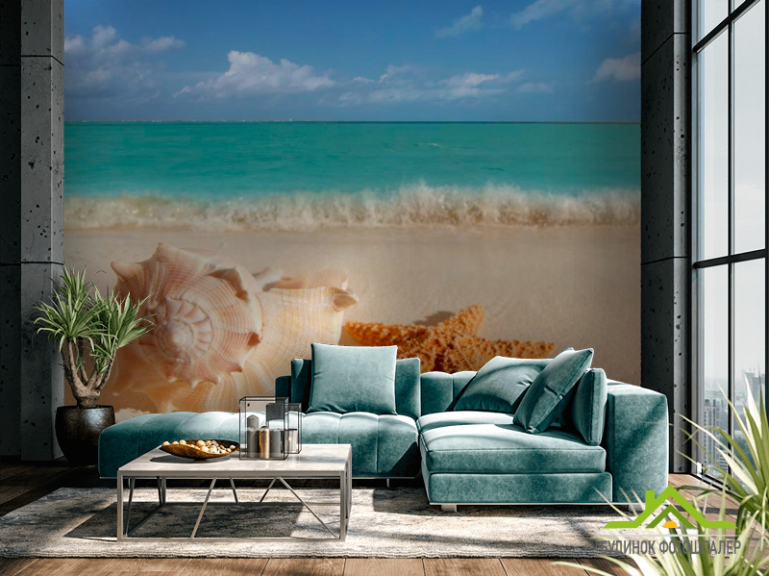 Фотообои Морская звезда, ракушки