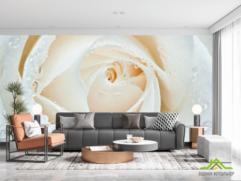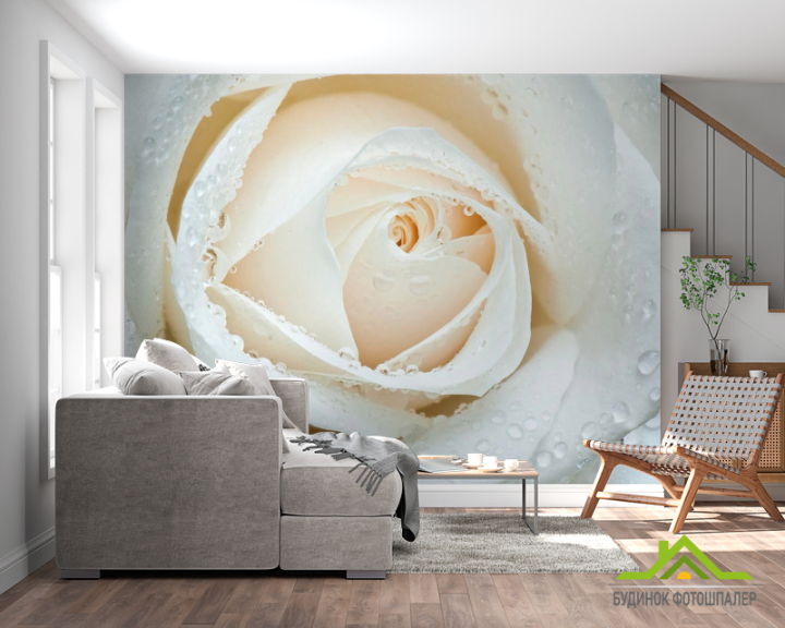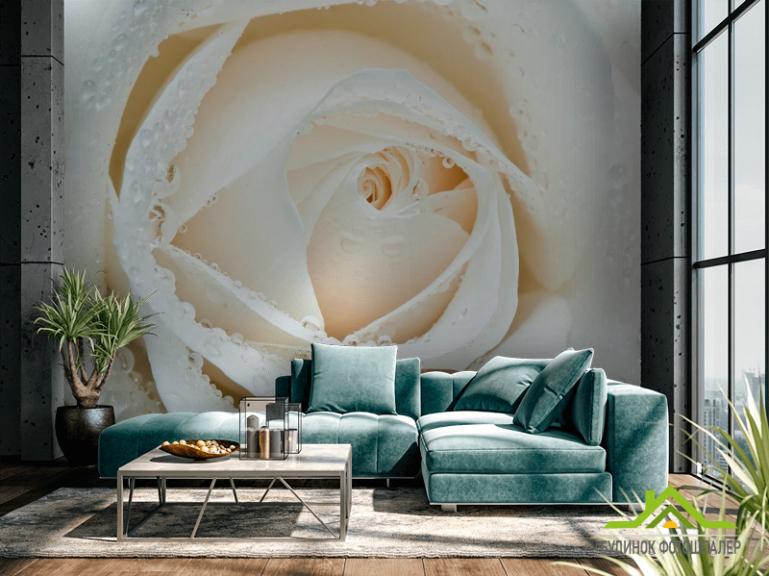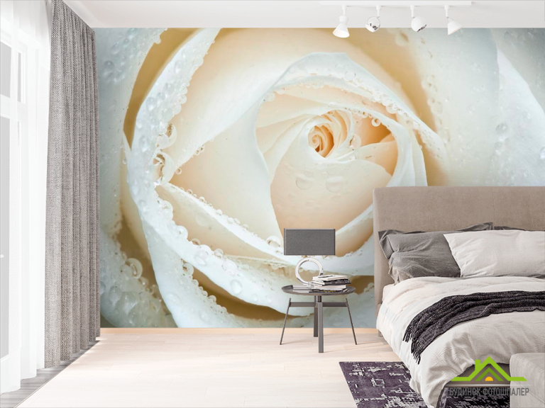 Фотообои Белая роза макро-съемка Фотообои Белая роза макро-съемка