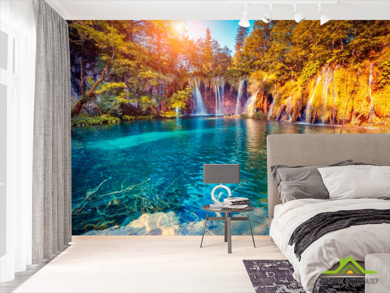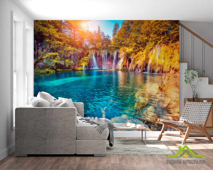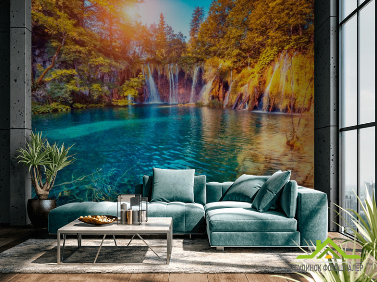 Фотообои Много водопадов, горы Фотообои Много водопадов, горы