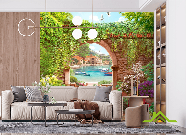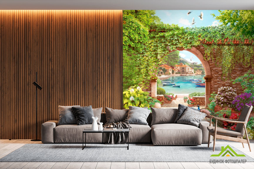 Фотообои Павлины, арка, цветы Фотообои Павлины, арка, цветы