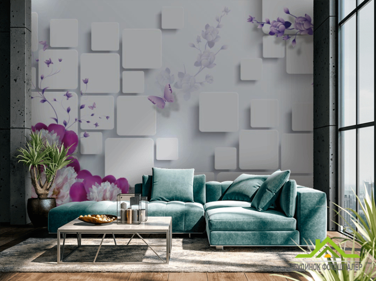 Фотообои Цветы, стена, квадраты Фотообои Цветы, стена, квадраты