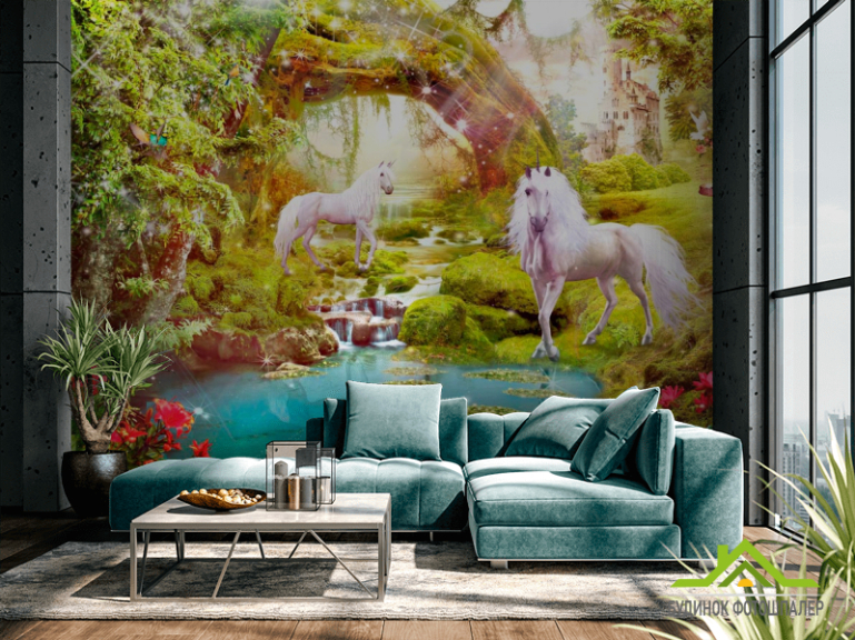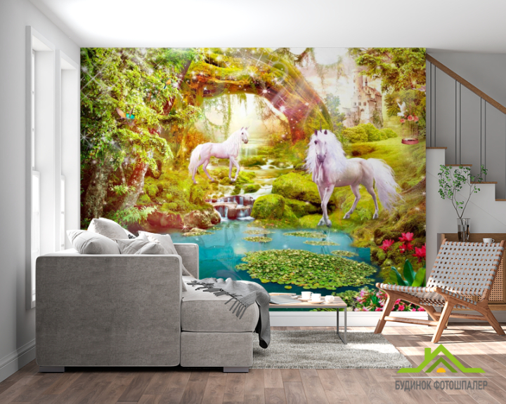 Фотообои Лошади, арка, вода Фотообои Лошади, арка, вода