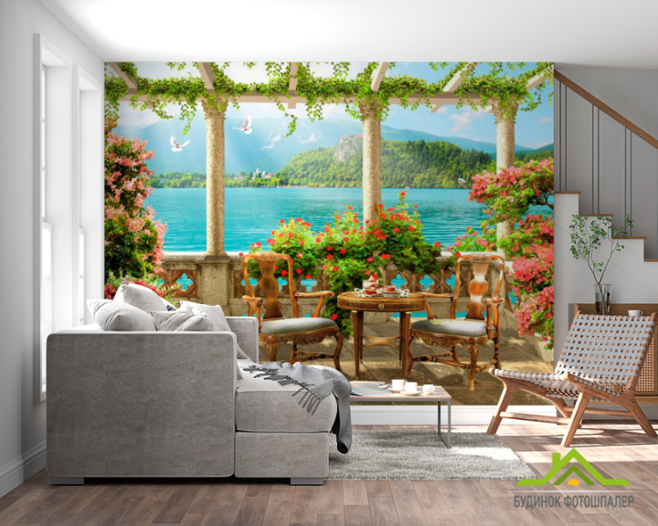 Фотообои Море, стул, стол, терраса