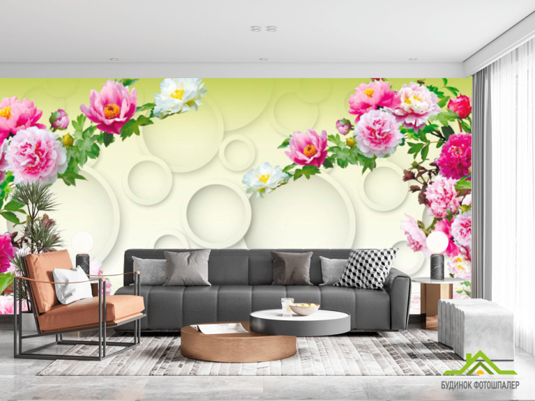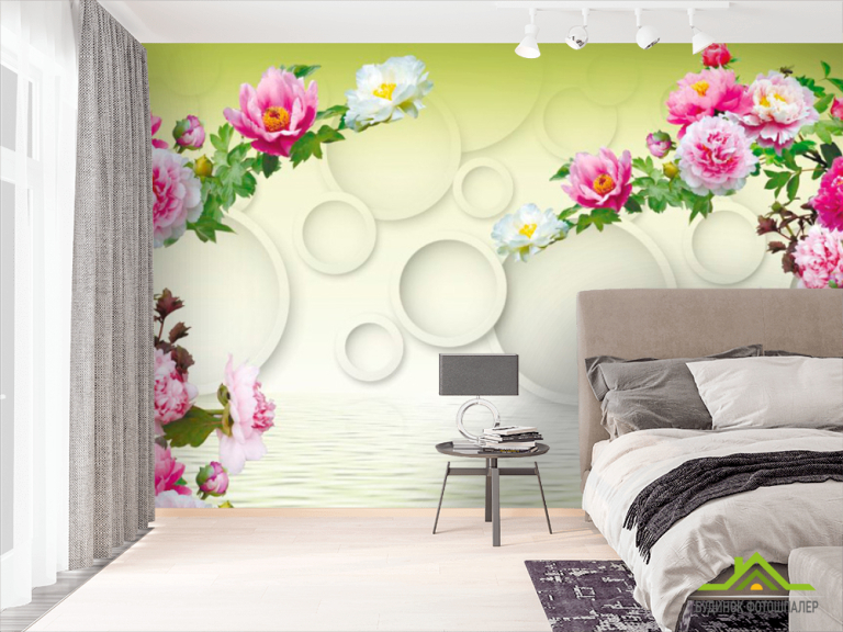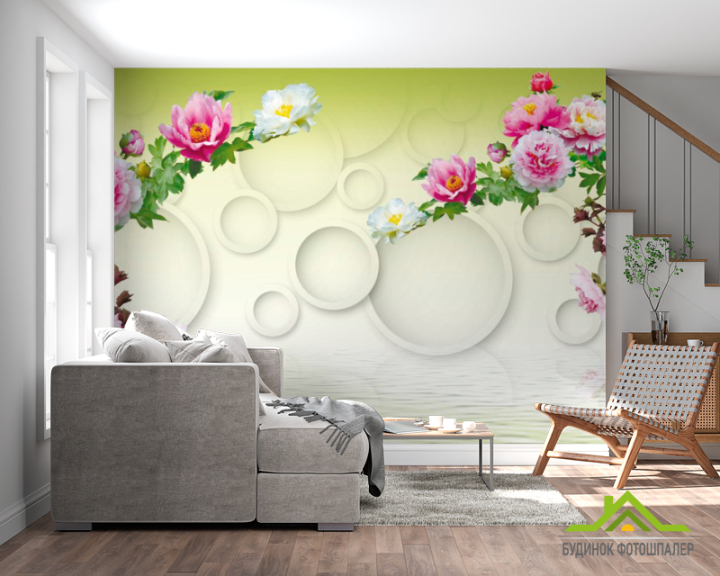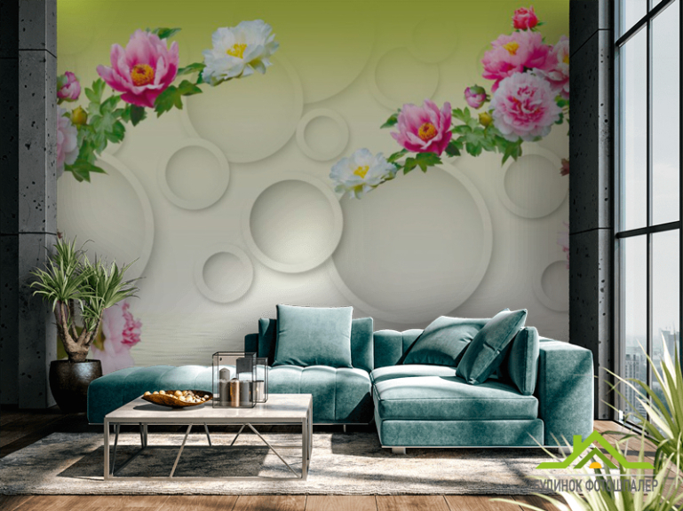 Фотообои 3д цветы с кольцами