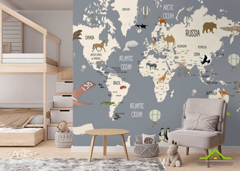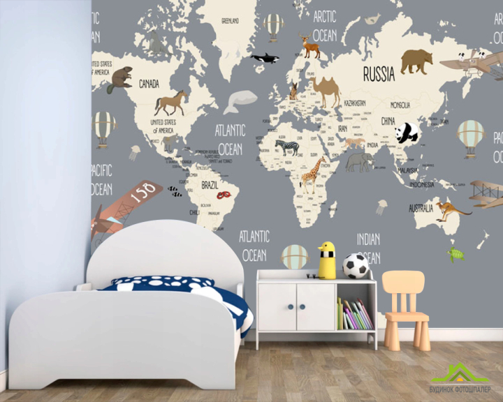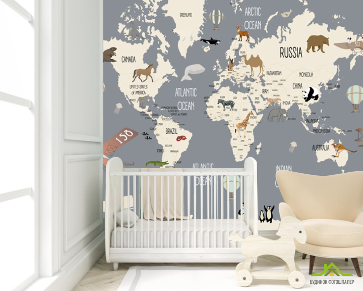 Фотообои Серая карта на английском Фотообои Серая карта на английском
