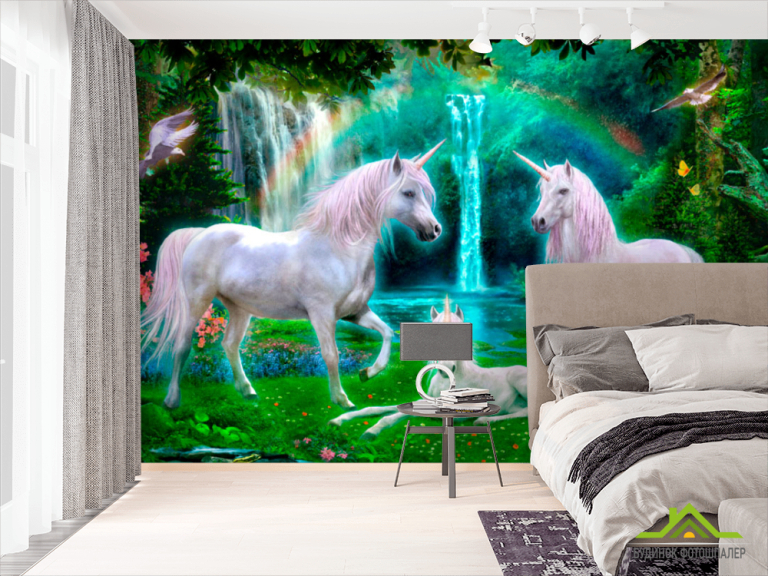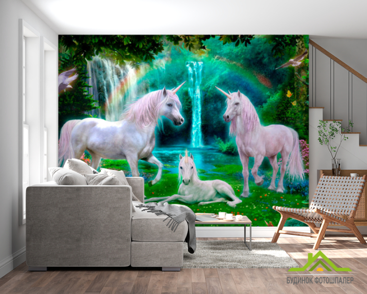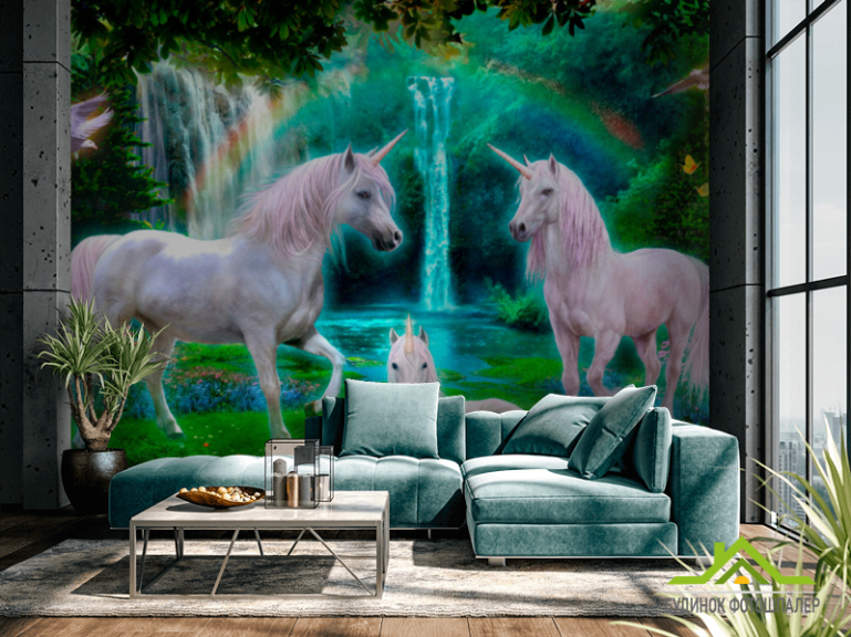 Фотообои Сказочные 3 единорога Фотообои Сказочные 3 единорога