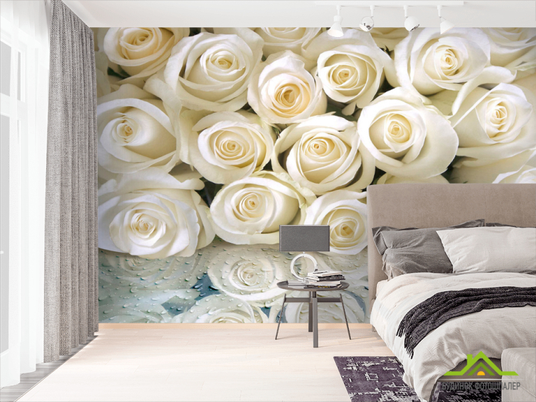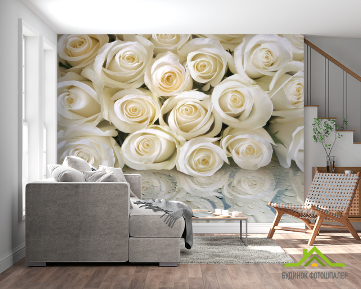 Фотообои Белые розы с росой Фотообои Белые розы с росой