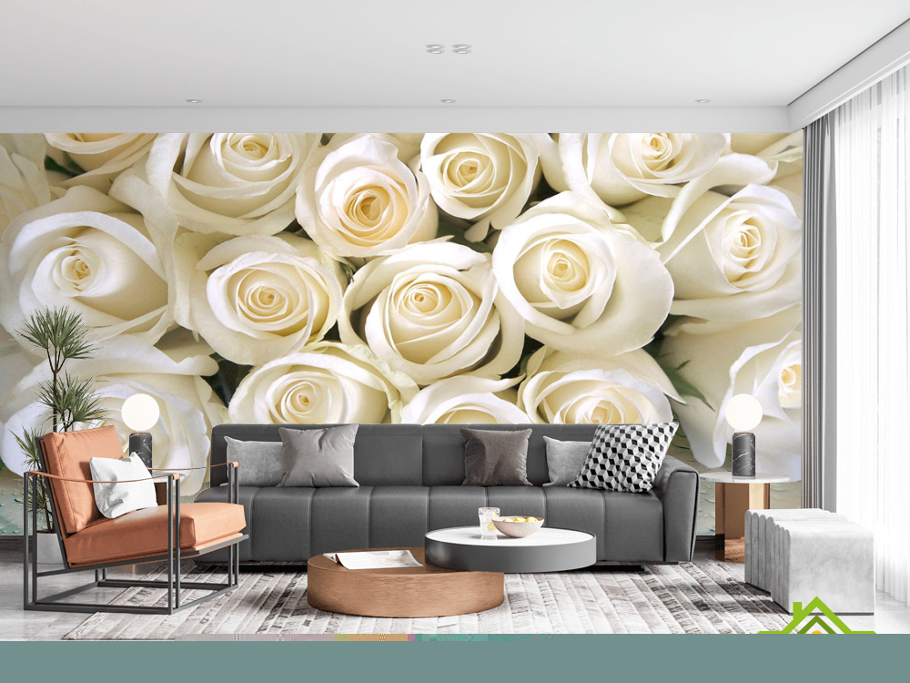 Фотообои Белые розы с росой
