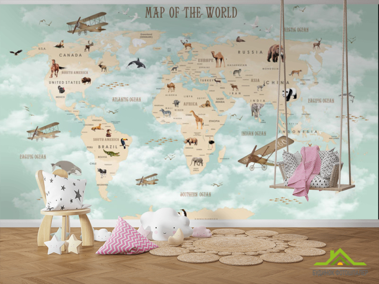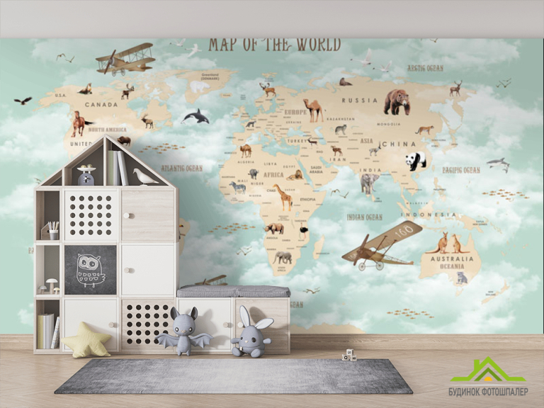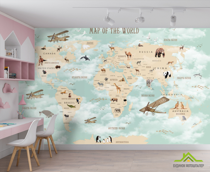 Фотообои Зеленая карта на английском языке Фотообои Зеленая карта на английском языке
