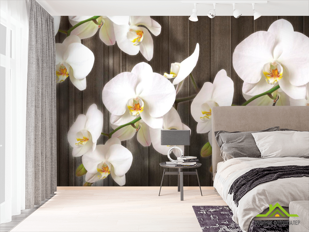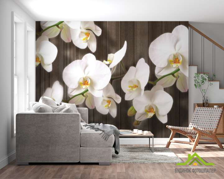 Фотообои Белые орхидеи на дереве Фотообои Белые орхидеи на дереве