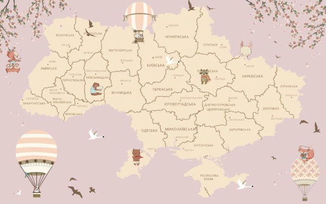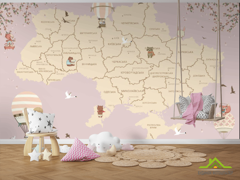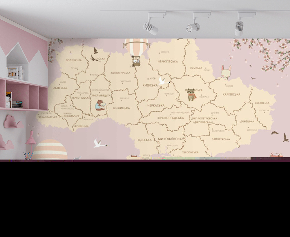 Фотообои Розовая карта Украины в комнате девочки Фотообои Розовая карта Украины в комнате девочки
