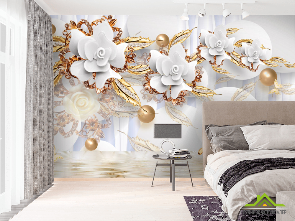 Фотообои Керамические цветы с золотом