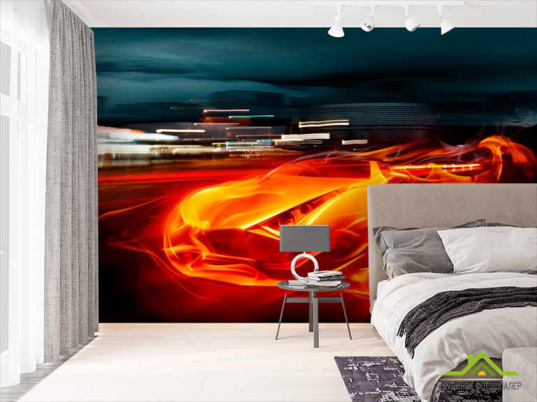 Фотообои Огненный автомобиль Фотообои Огненный автомобиль