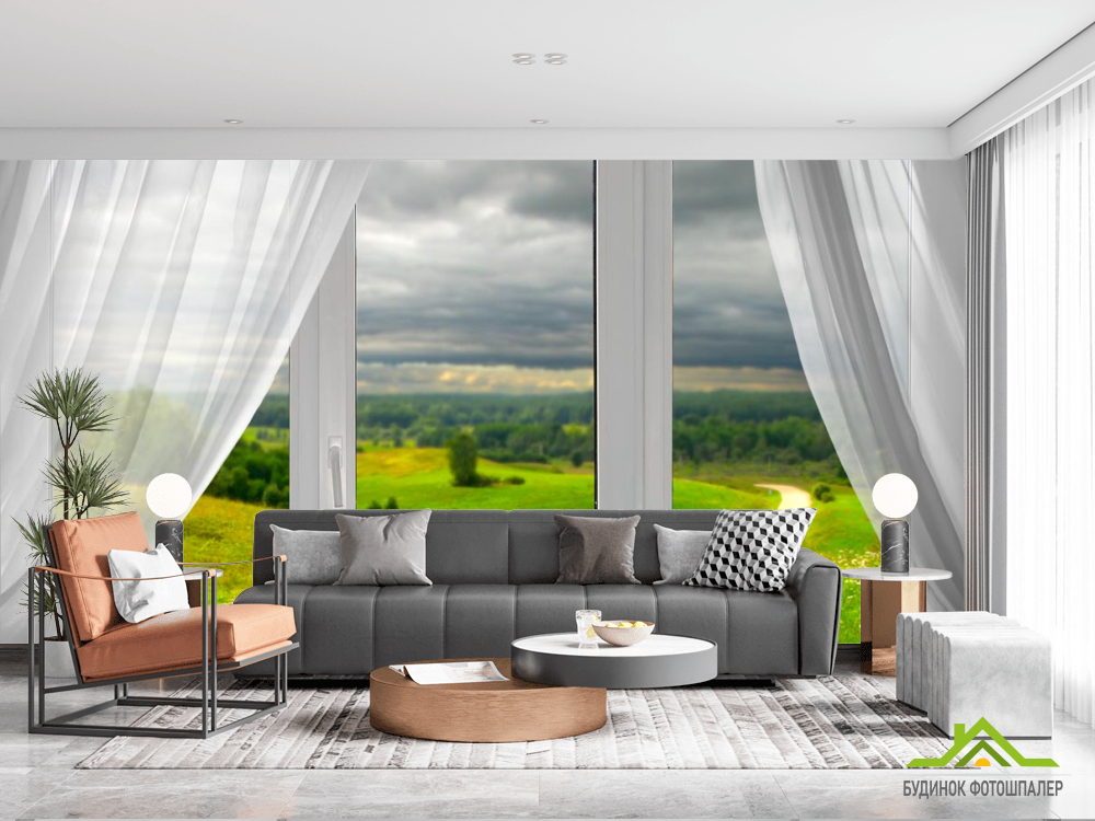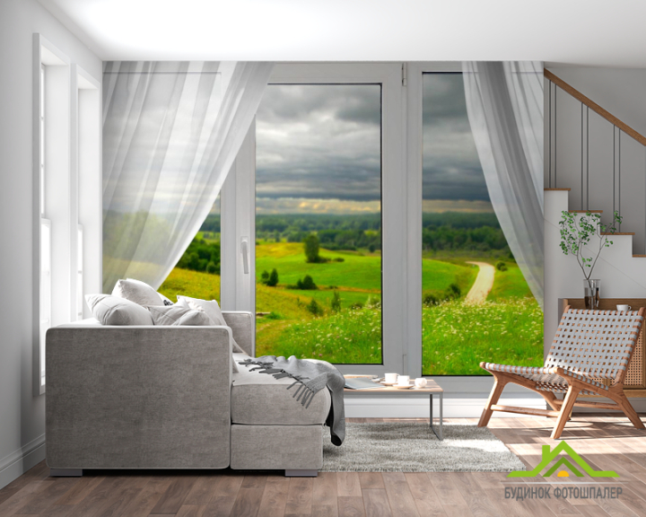 Фотообои вид на поле из окна Фотообои вид на поле из окна