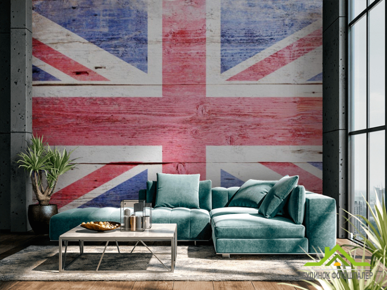 Фотообои флаг Великобритании на деревянном фоне