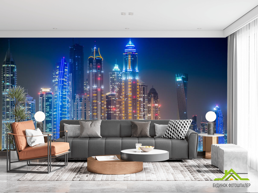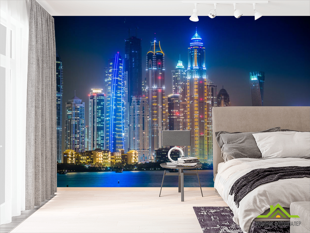 Фотообои синие огни вечернего города Фотообои синие огни вечернего города