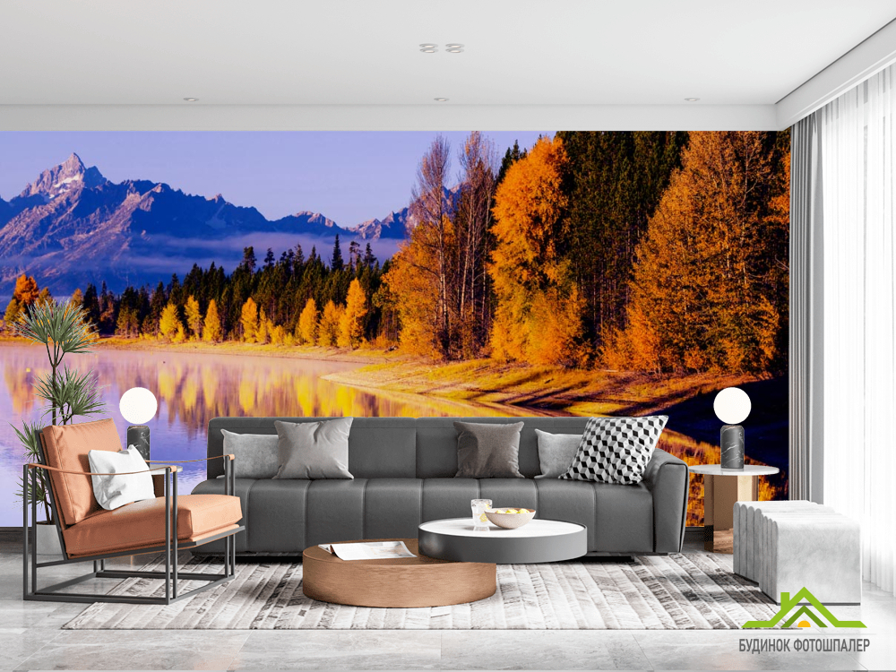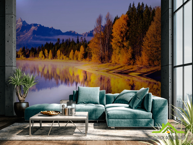Фотообои осенние деревья над озером Фотообои осенние деревья над озером