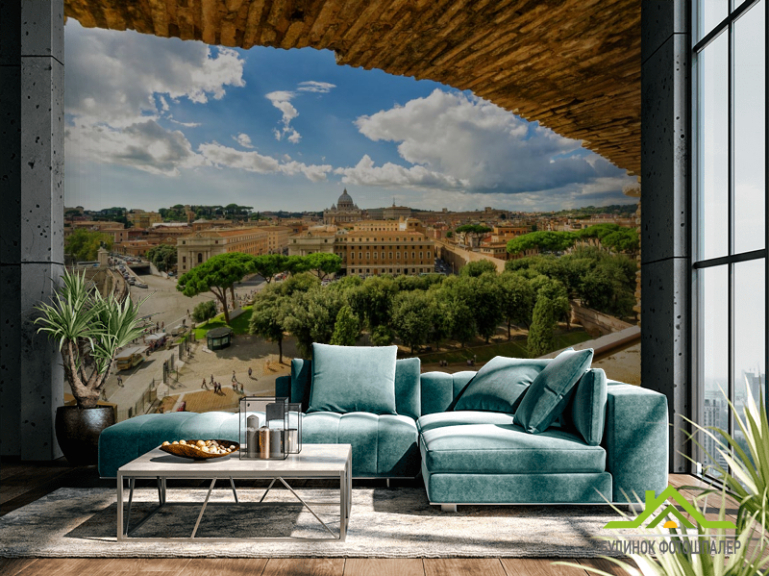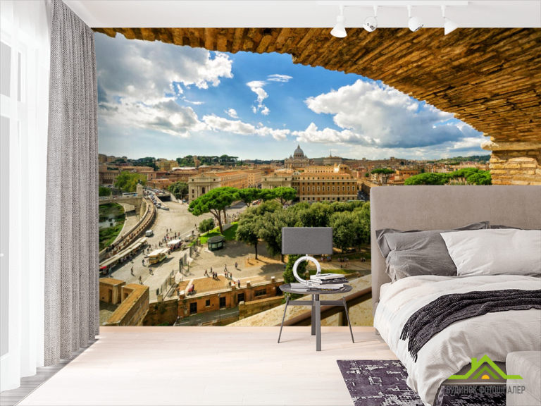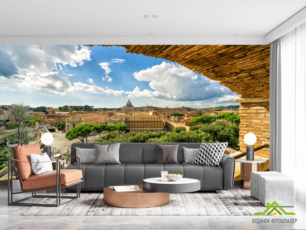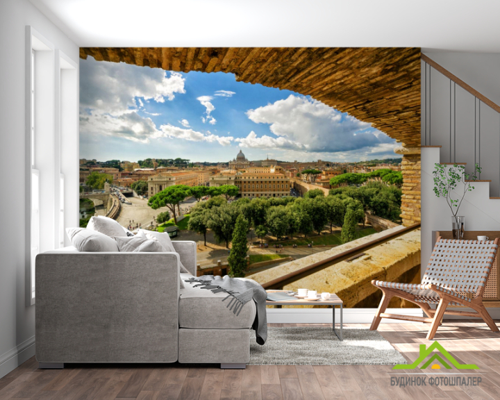 Фотообои вид на город с каменного балкона Фотообои вид на город с каменного балкона