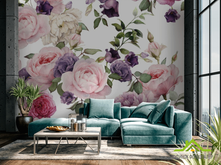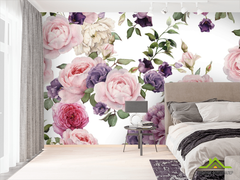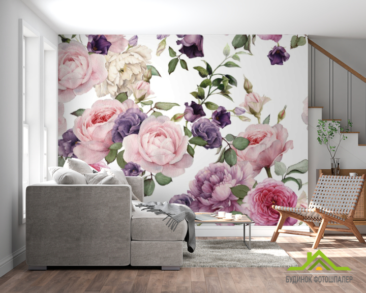Фотообои розовые и фиолетовые пионы рисунок Фотообои розовые и фиолетовые пионы рисунок