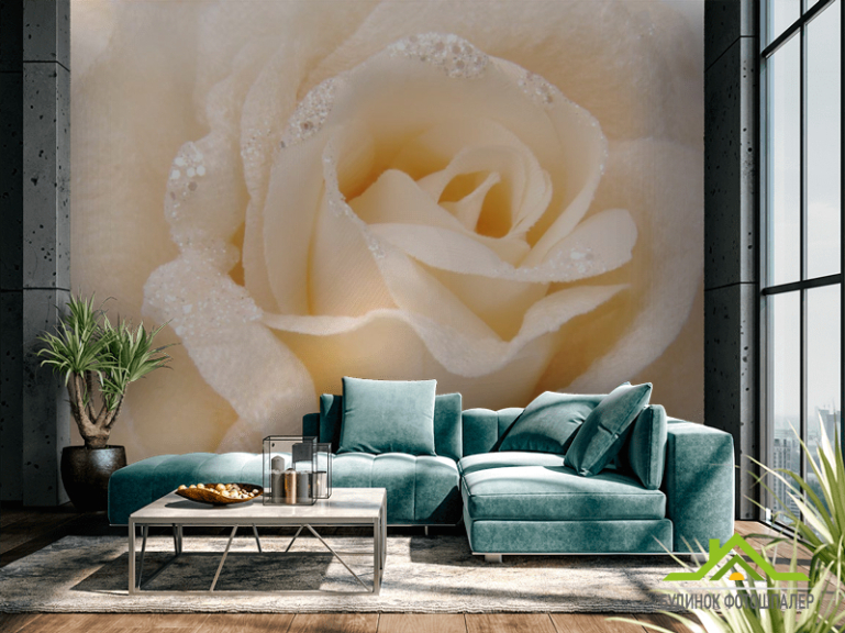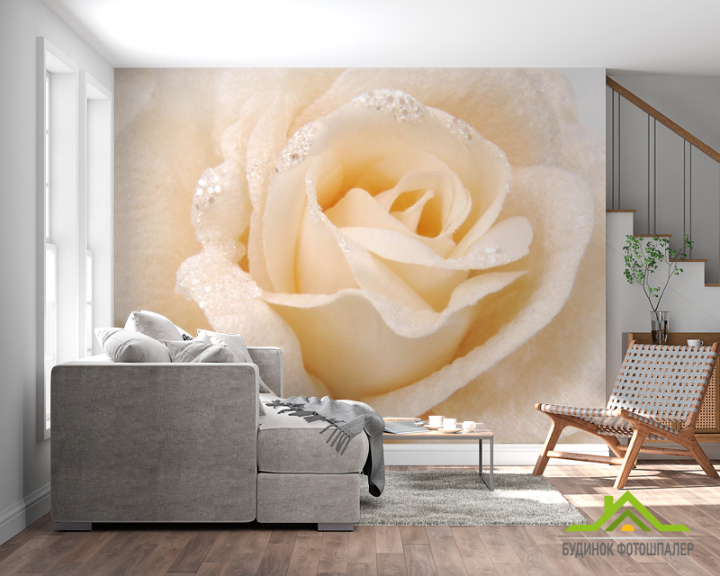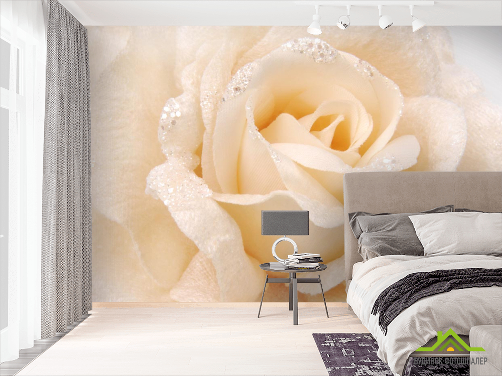 Фотообои бежевая роза из ткани с блестками Фотообои бежевая роза из ткани с блестками