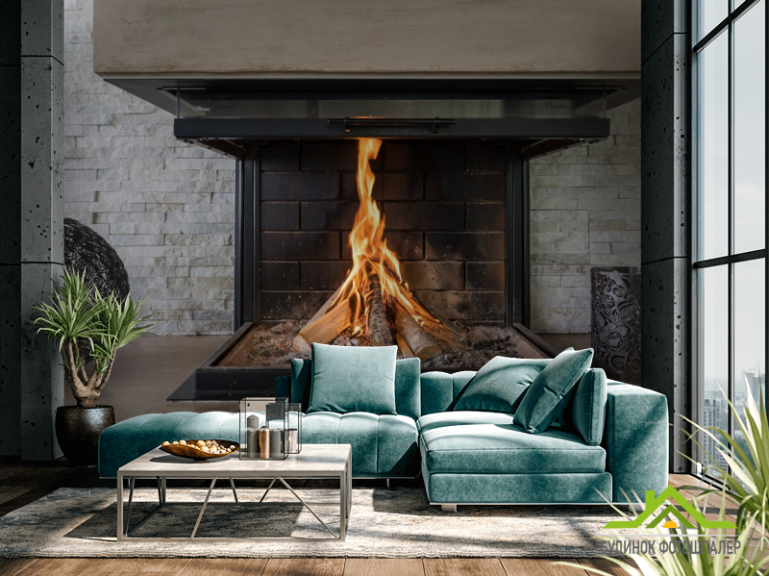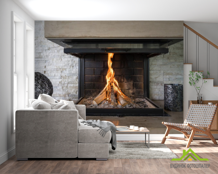 Фотообои камин и белая стена Фотообои камин и белая стена
