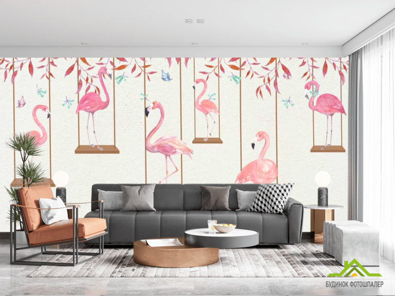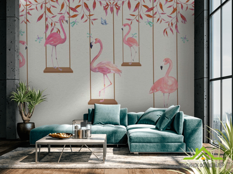 Фотообои Фламинго на качелях Фотообои Фламинго на качелях