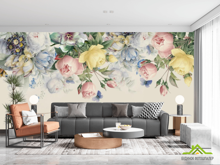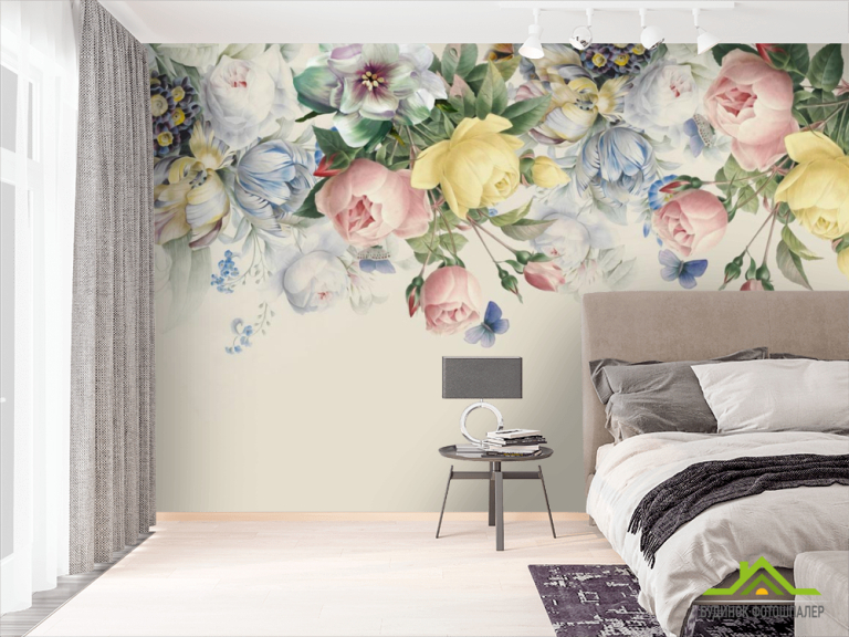 Фотообои Нежные винтажные цветы с потолка Фотообои Нежные винтажные цветы с потолка