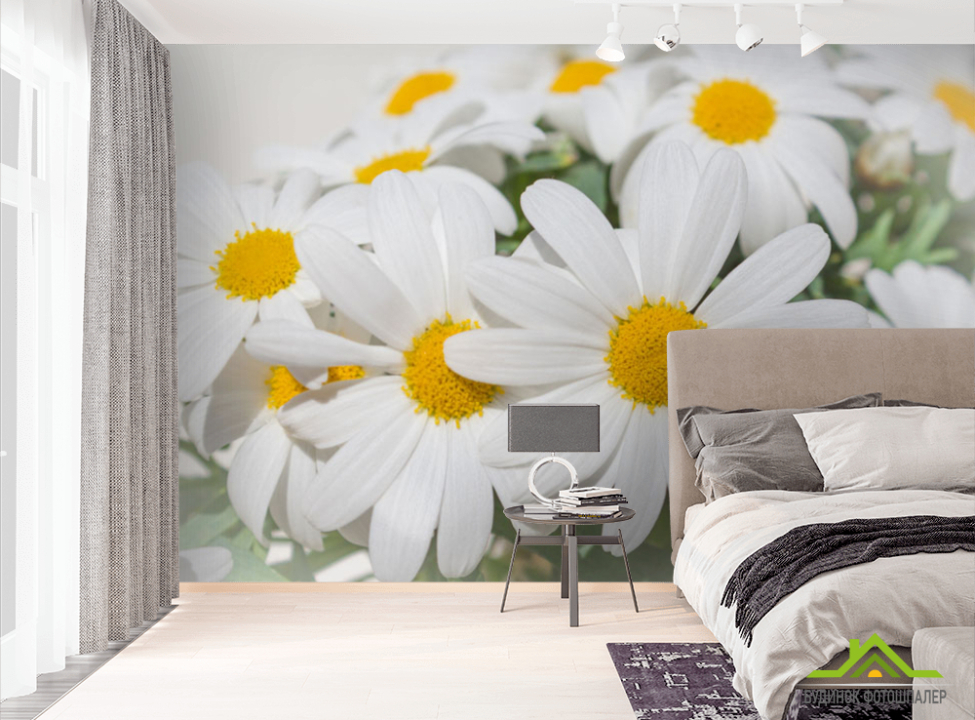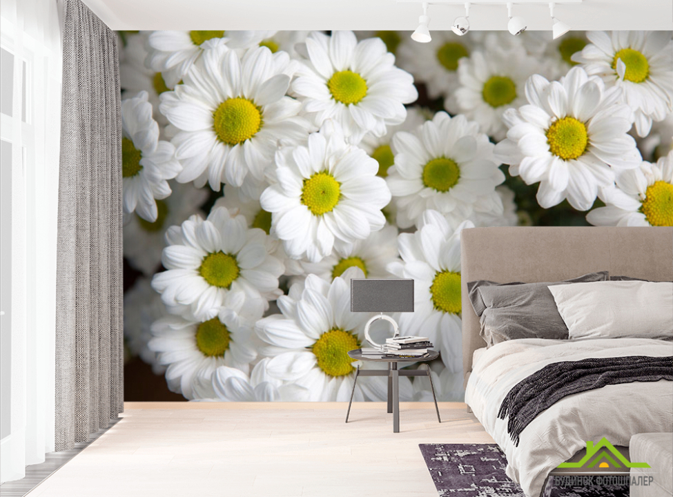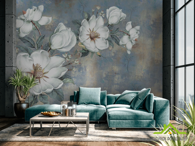 Фотообои Белые цветы на голубом фоне Фотообои Белые цветы на голубом фоне