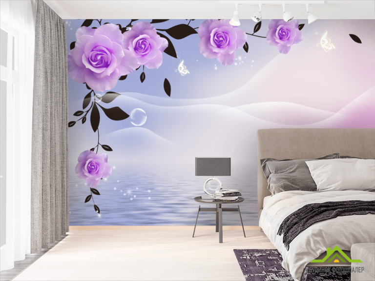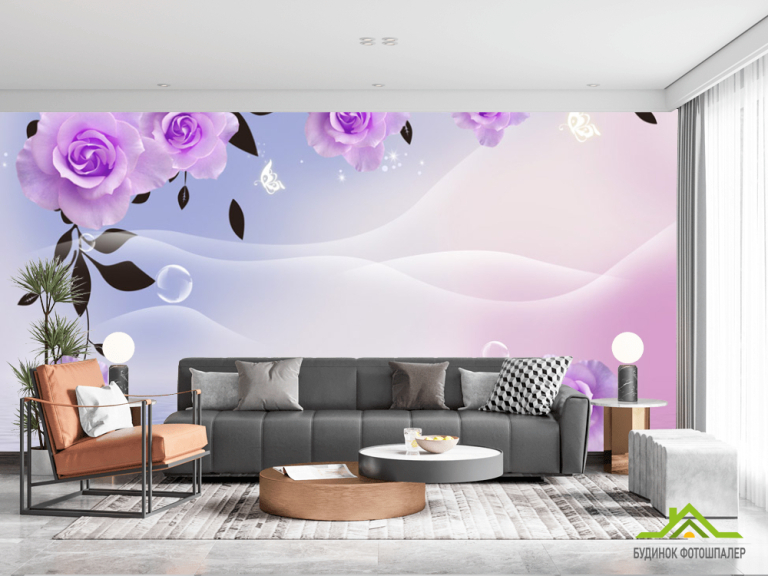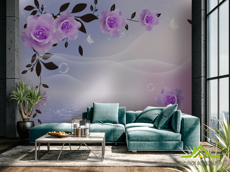 Фотообои  Фиолетовые 3д цветы Фотообои  Фиолетовые 3д цветы