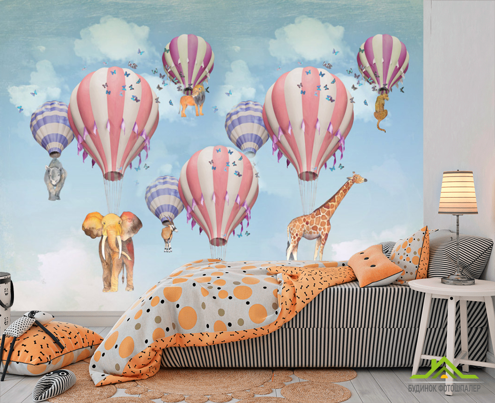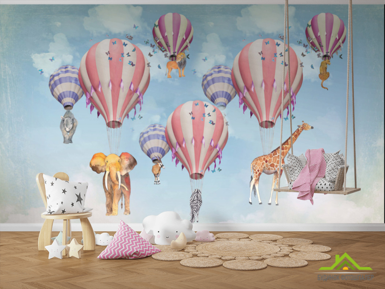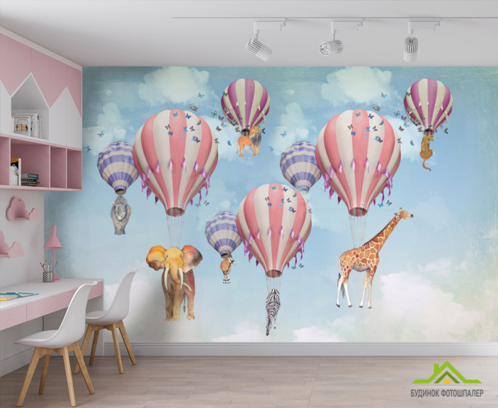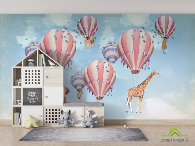 Фотообои Воздушные шары с животными Фотообои Воздушные шары с животными
