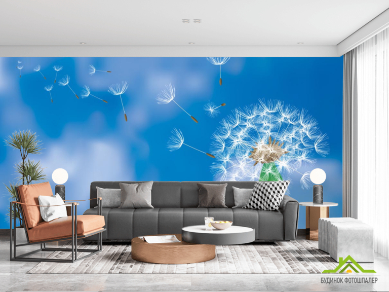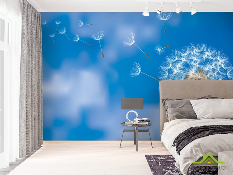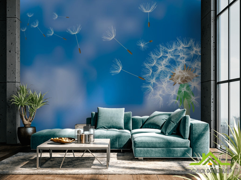 Фотообои Одуванчик на синем фоне Фотообои Одуванчик на синем фоне
