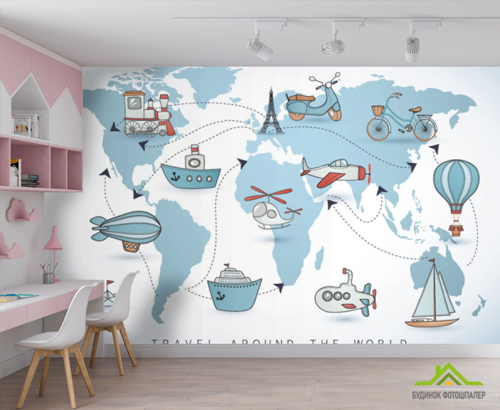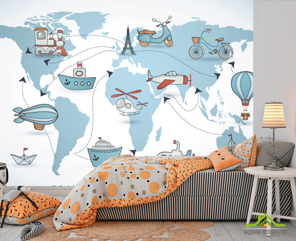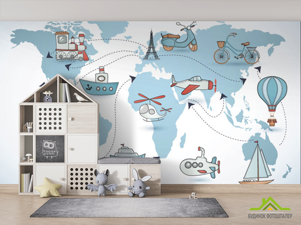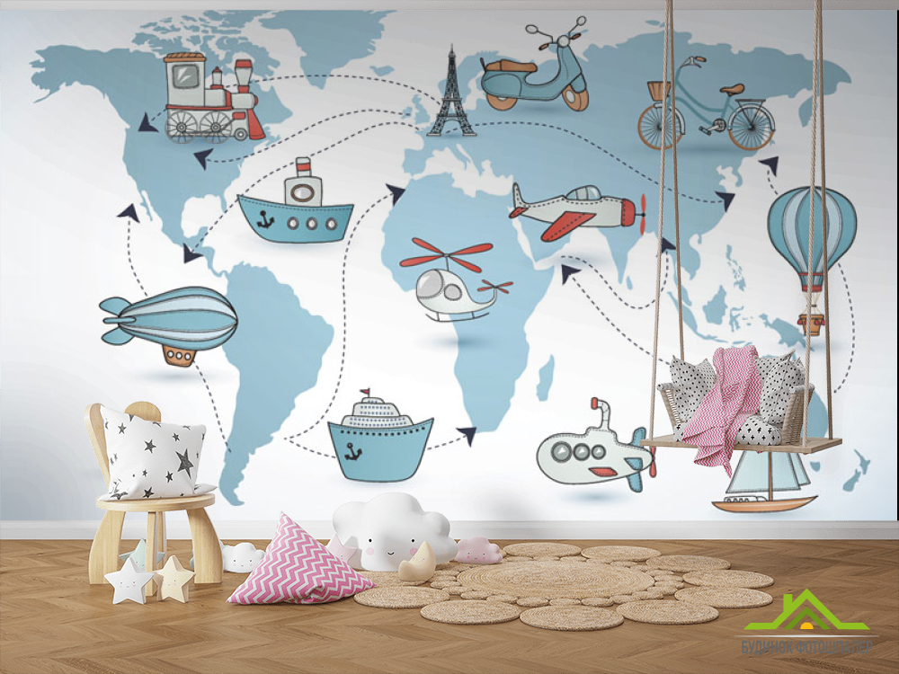 Фотообои Карта детская для маленьких путешественников Фотообои Карта детская для маленьких путешественников
