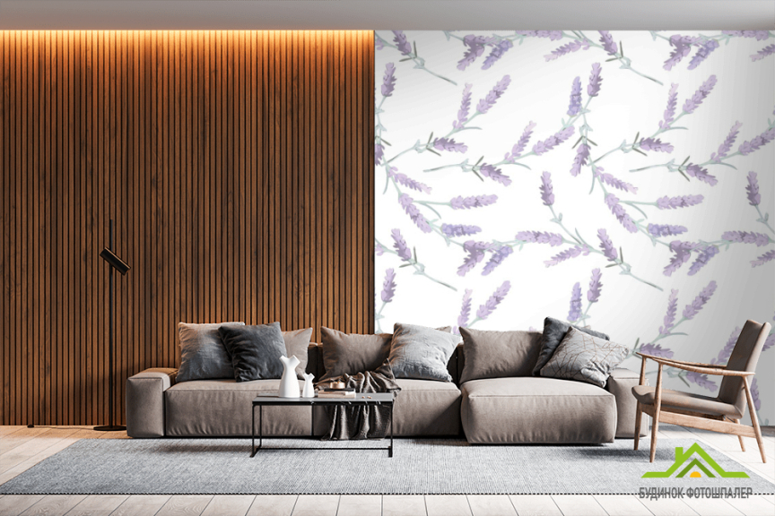 Фотообои Акварельные ветки лаванды Фотообои Акварельные ветки лаванды
