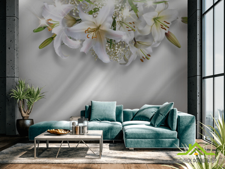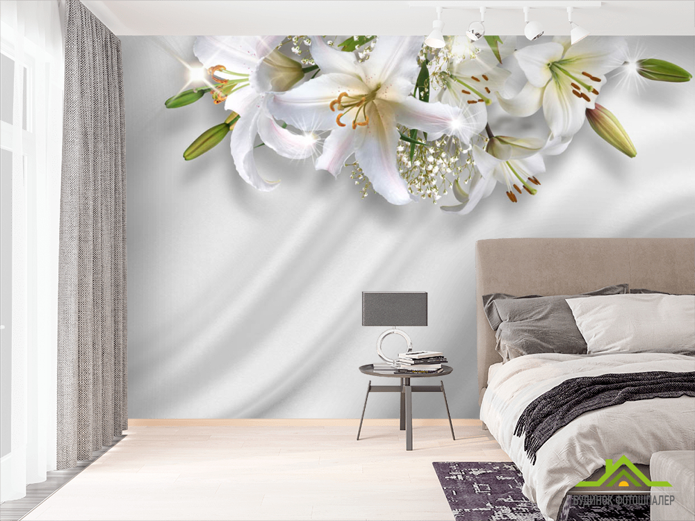 Фотообои Лилии на фоне атласа Фотообои Лилии на фоне атласа