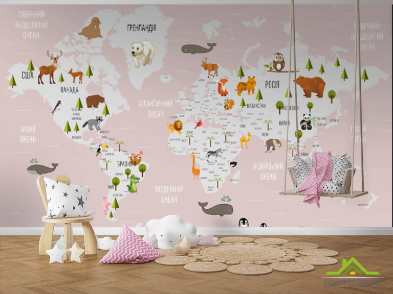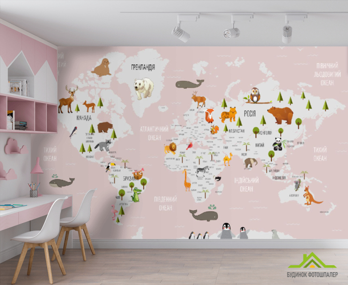 Фотообои Розовая карта для девочки на украинском Фотообои Розовая карта для девочки на украинском