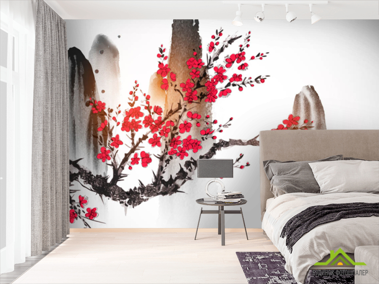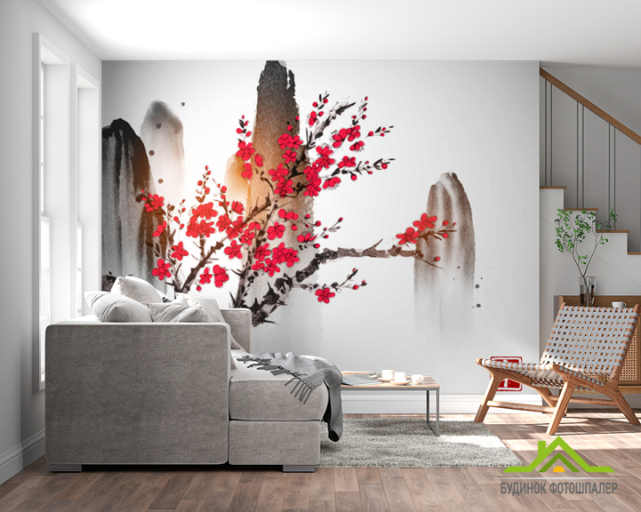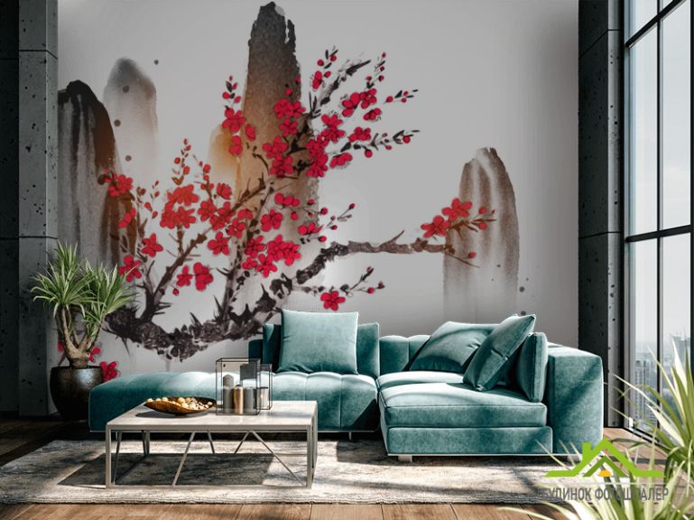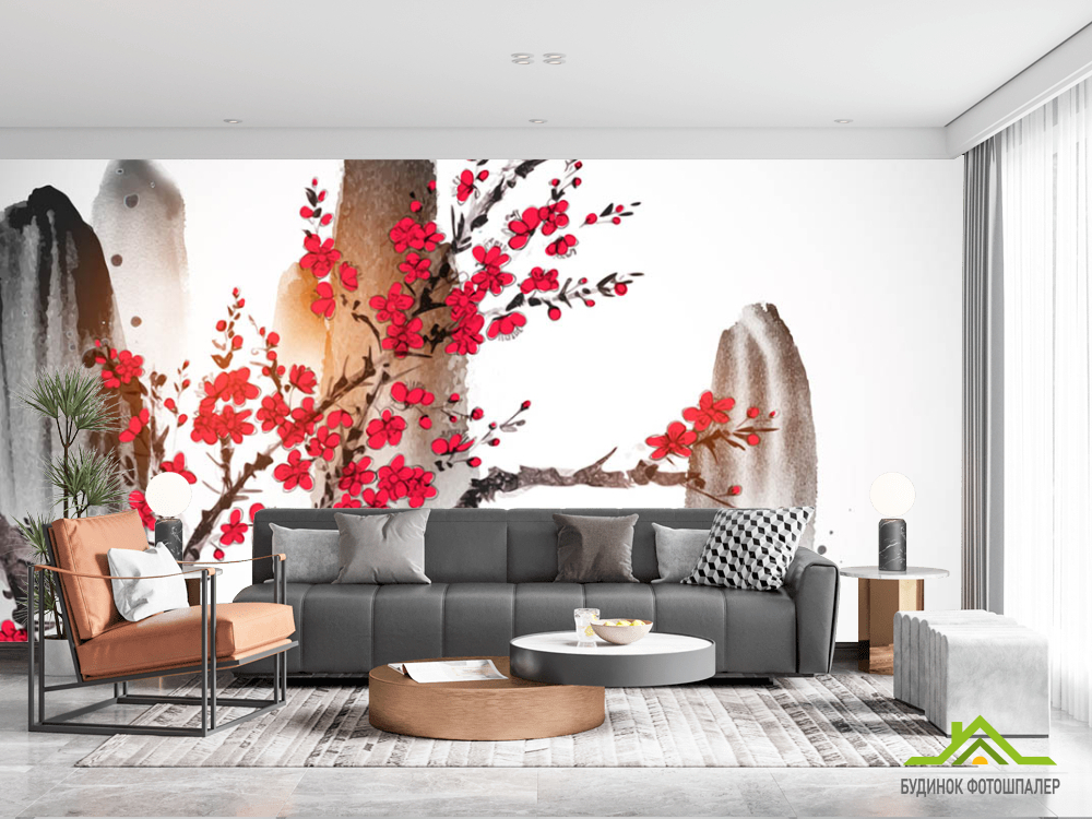 Фотообои Рисованная сакура в японском стиле Фотообои Рисованная сакура в японском стиле