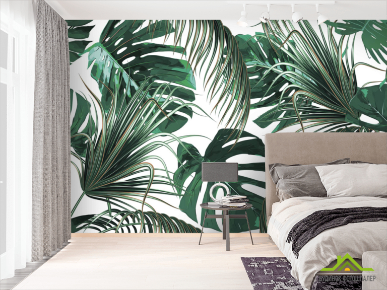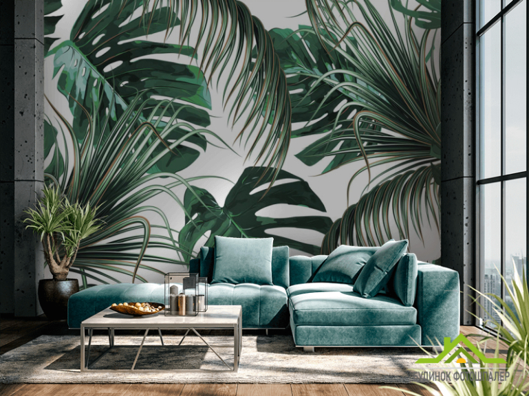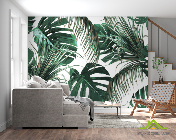 Фотообои Зелёные тропические листья Фотообои Зелёные тропические листья