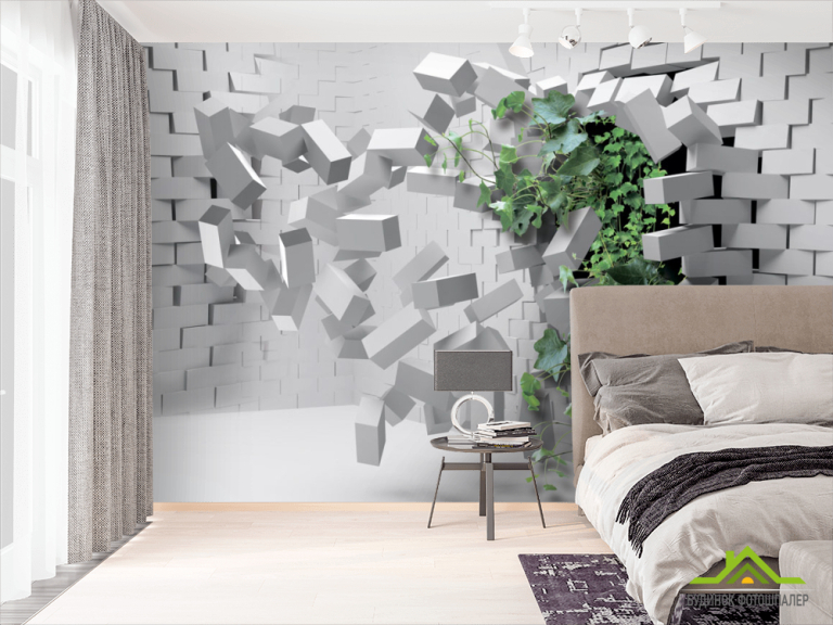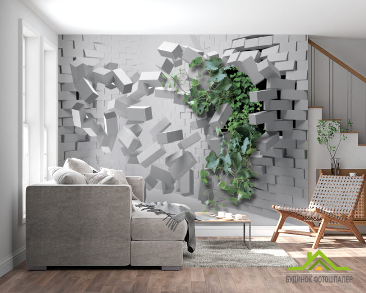 Фотообои Кирпичная стена с цветком Фотообои Кирпичная стена с цветком