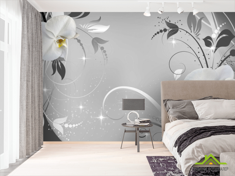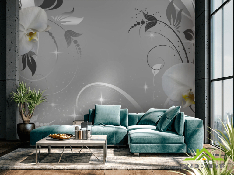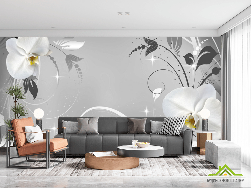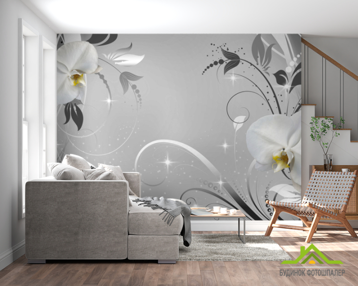 Фотообои Белые орхидеи на сером фоне