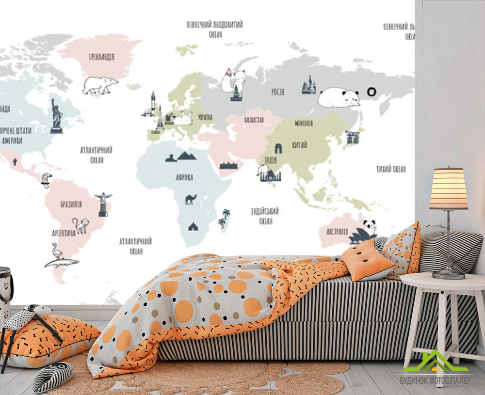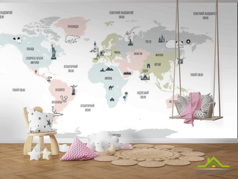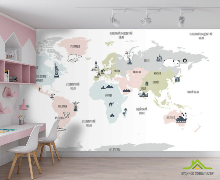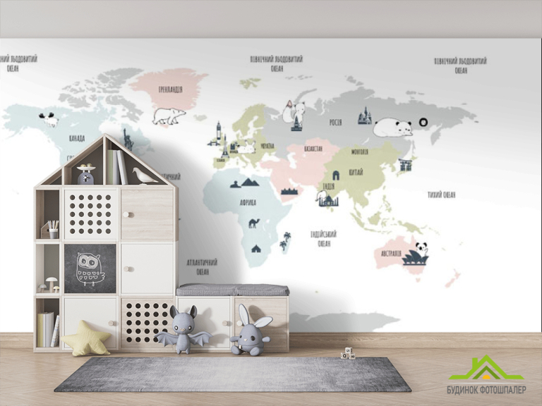 Фотообои Минималистичная карта в детскую на украинском