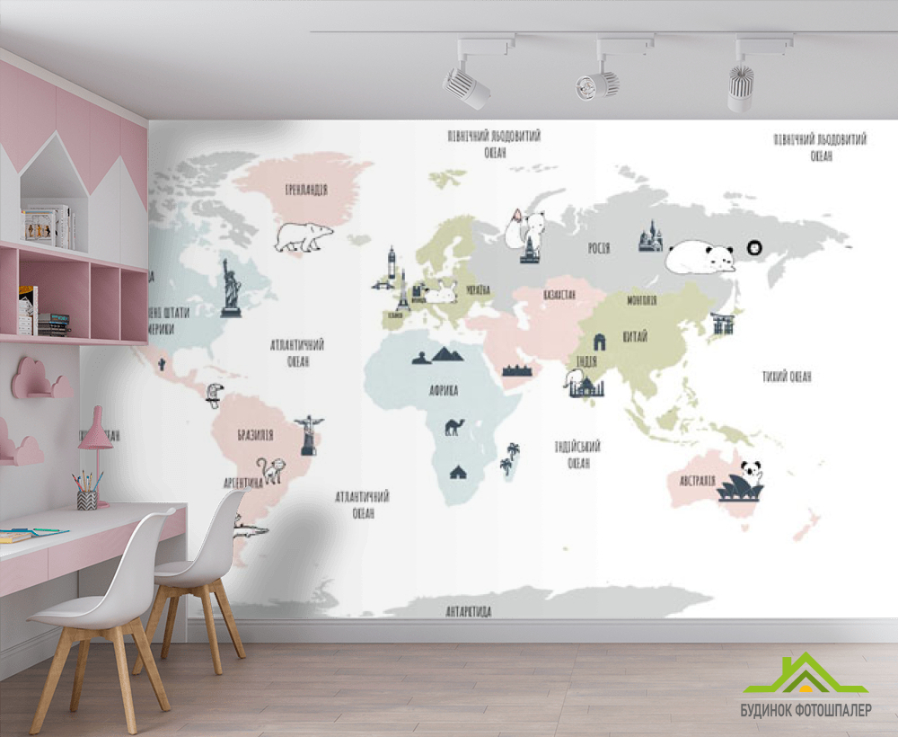 Фотообои Минималистичная карта в детскую на украинском Фотообои Минималистичная карта в детскую на украинском