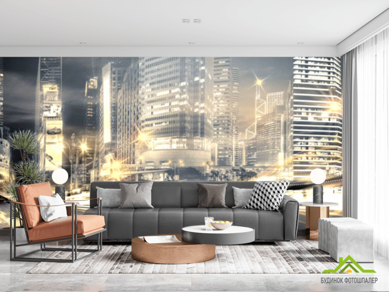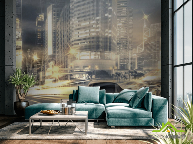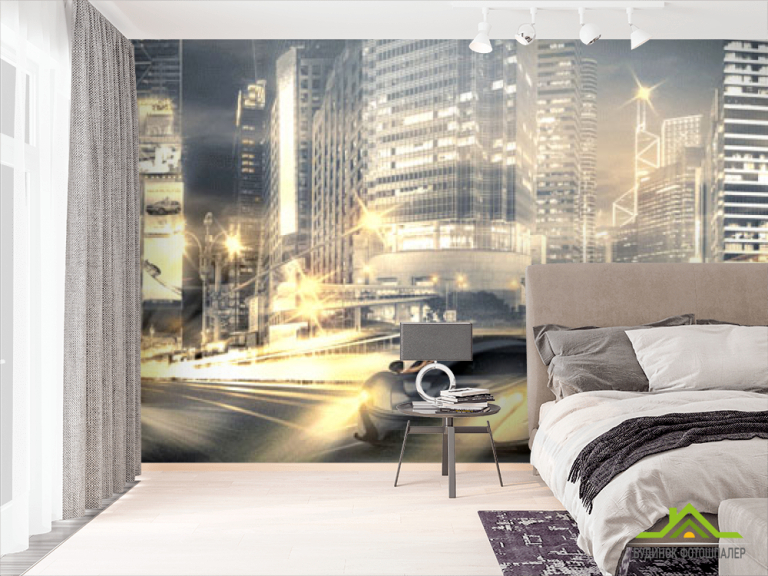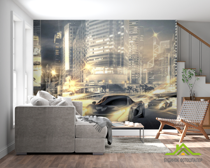 Фотообои Машина на фоне ночного города Фотообои Машина на фоне ночного города