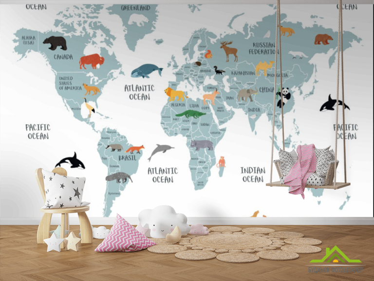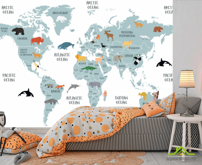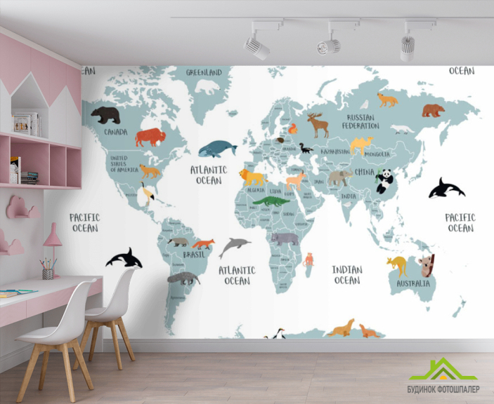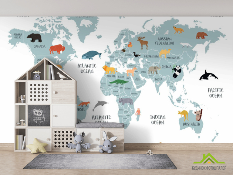 Фотообои Детская карта на украинском с животными Фотообои Детская карта на украинском с животными