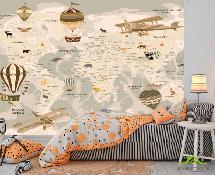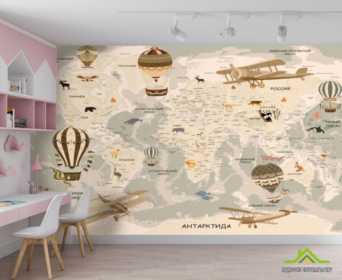 Фотообои Коричневая карта со зверюшками