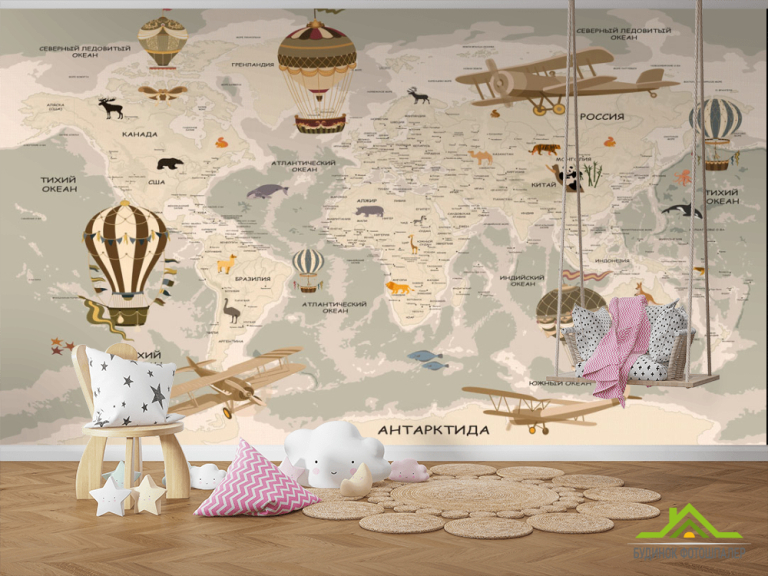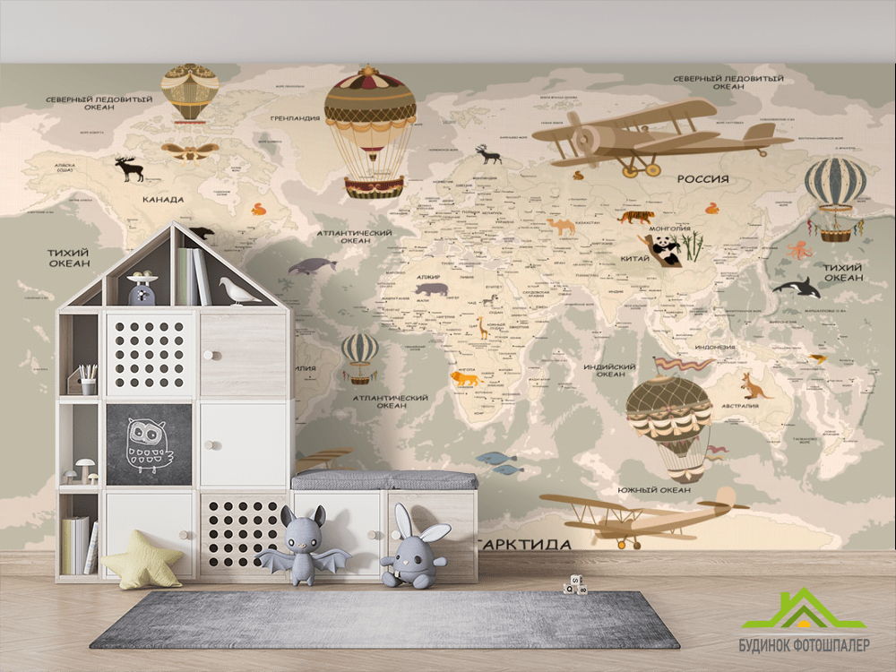 Фотообои Коричневая карта со зверюшками Фотообои Коричневая карта со зверюшками