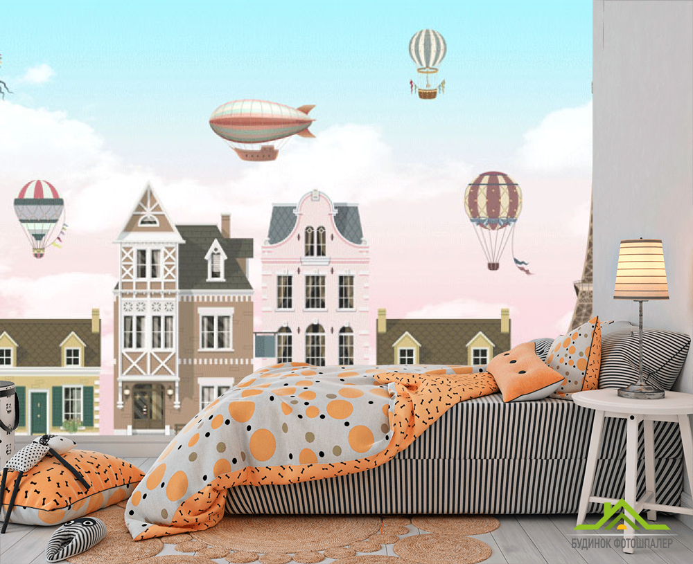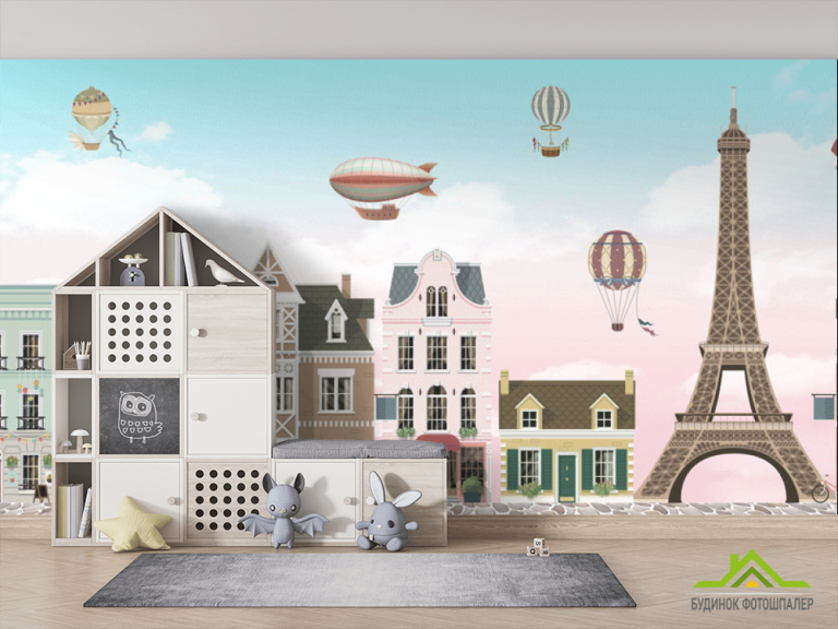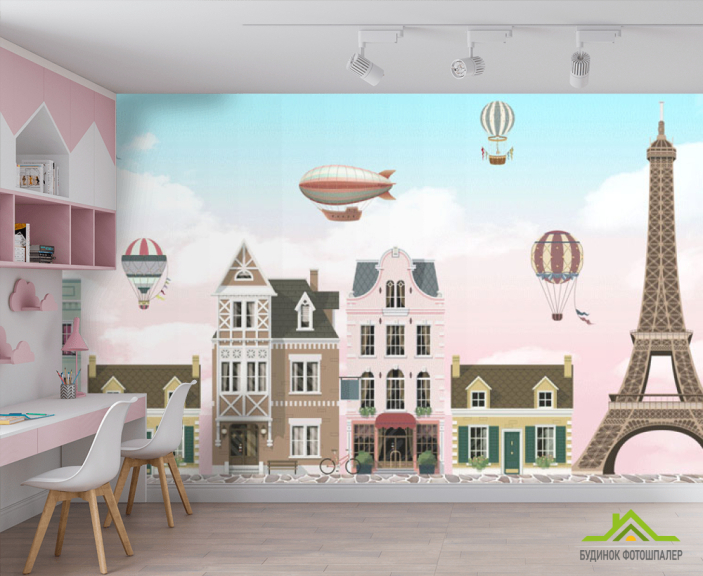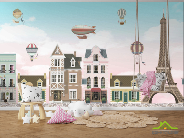 Фотообои Домики и эйфилевая башня Фотообои Домики и эйфилевая башня