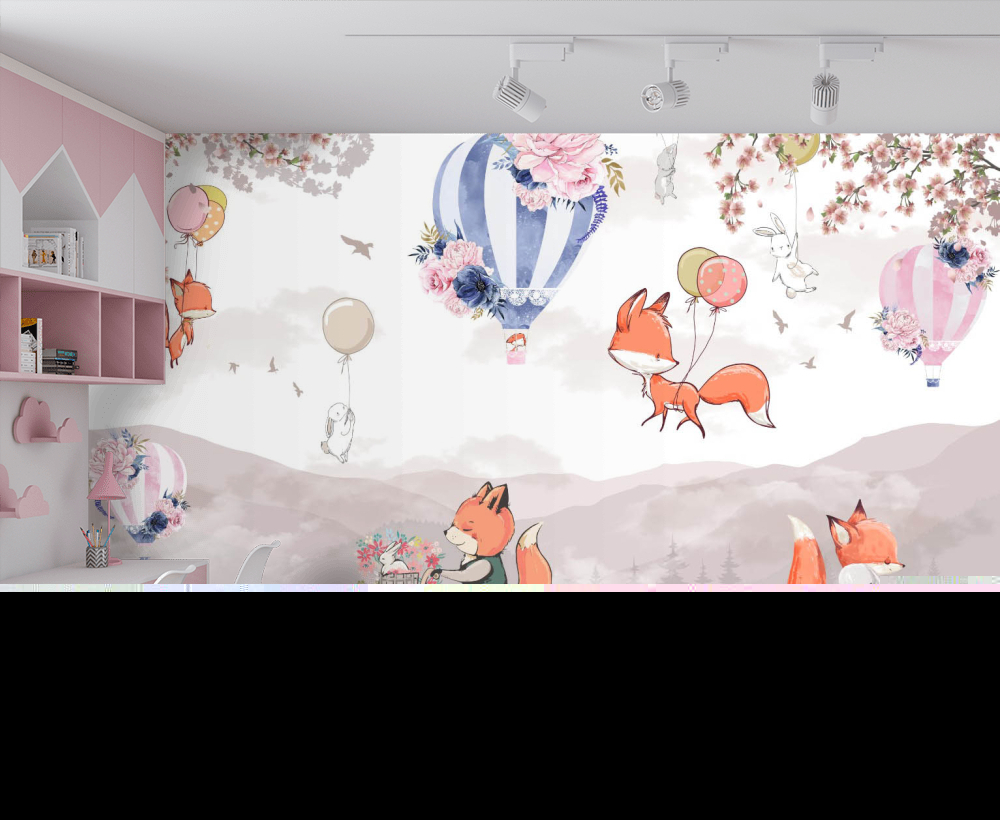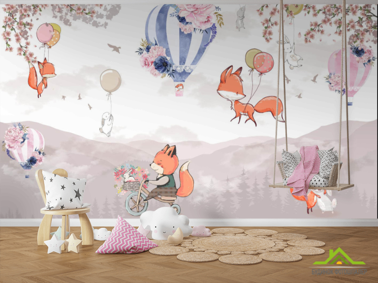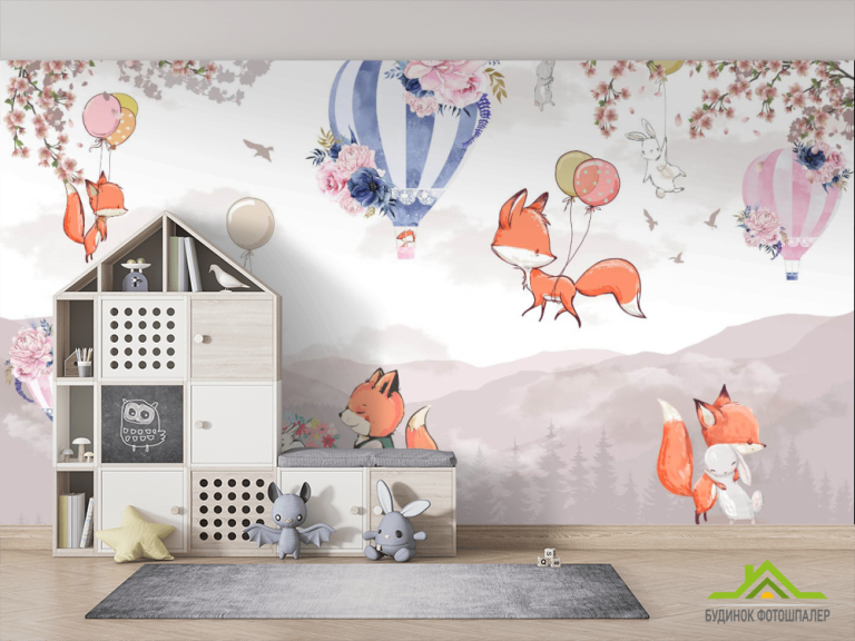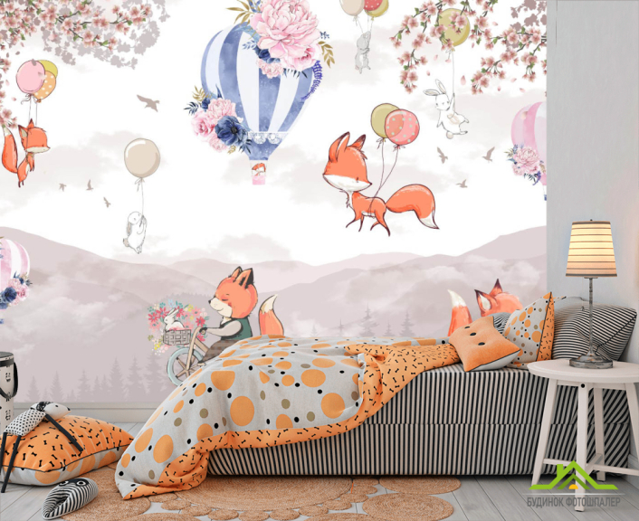 Фотообои Лисички на воздушных шарах Фотообои Лисички на воздушных шарах