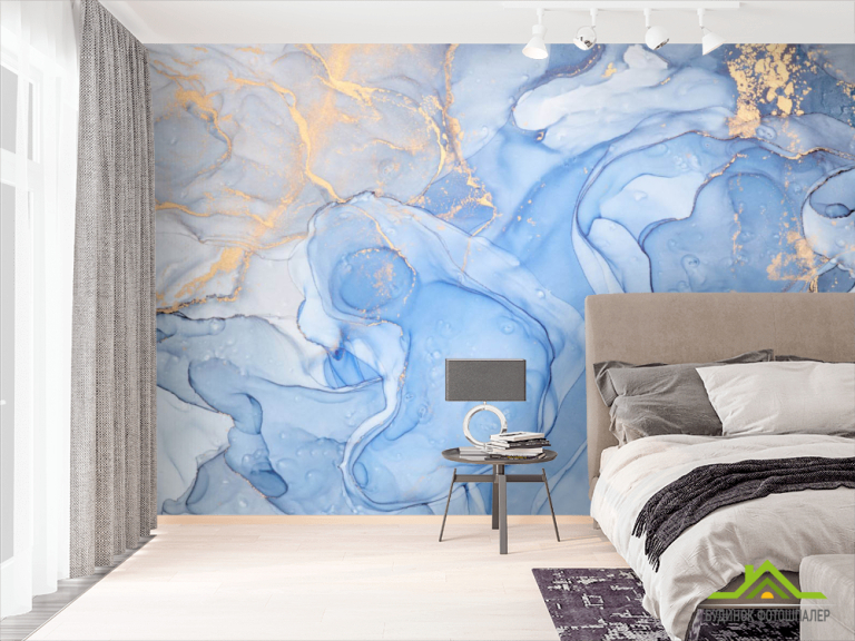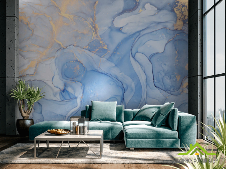 Фотообои Голубой флюид с золотом Фотообои Голубой флюид с золотом