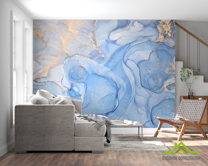 Фотообои Голубой флюид с золотом