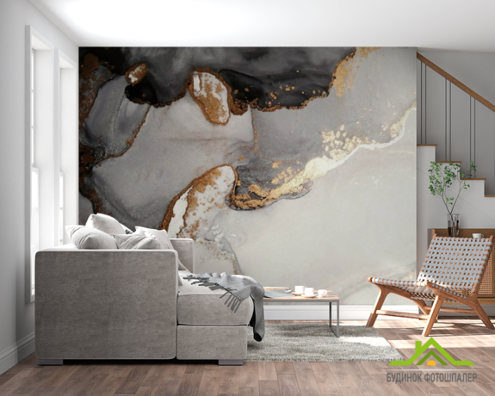 Фотообои Флюид чб с золотом